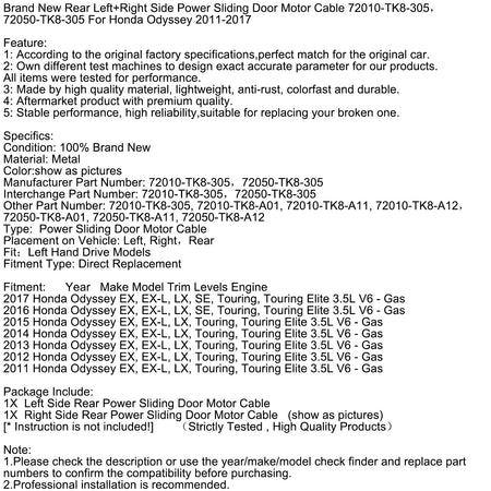新品 リア左+右側パワースライドドアモーターケーブル 72010-TK8-305、72050-TK8-305 ホンダオデッセイ 2011-2017用