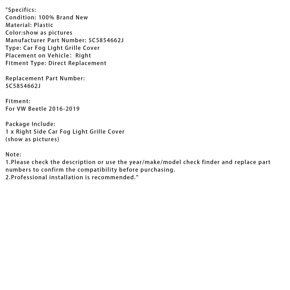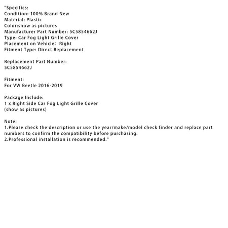 VWビートル2016-2019用右側フォグランプグリルカバー5C5854662J