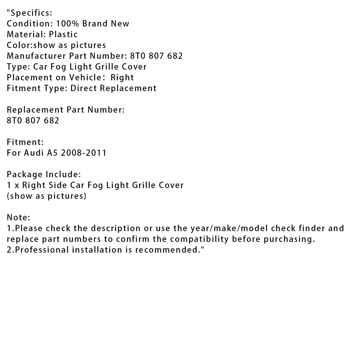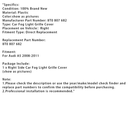 車右側フォグランプグリルカバー 8T0 807 682 Audi A5 2008-2011用