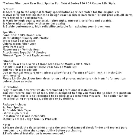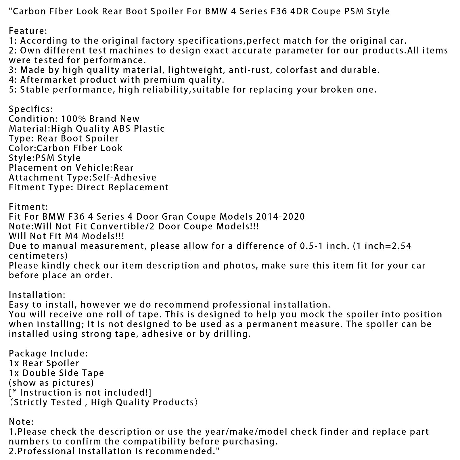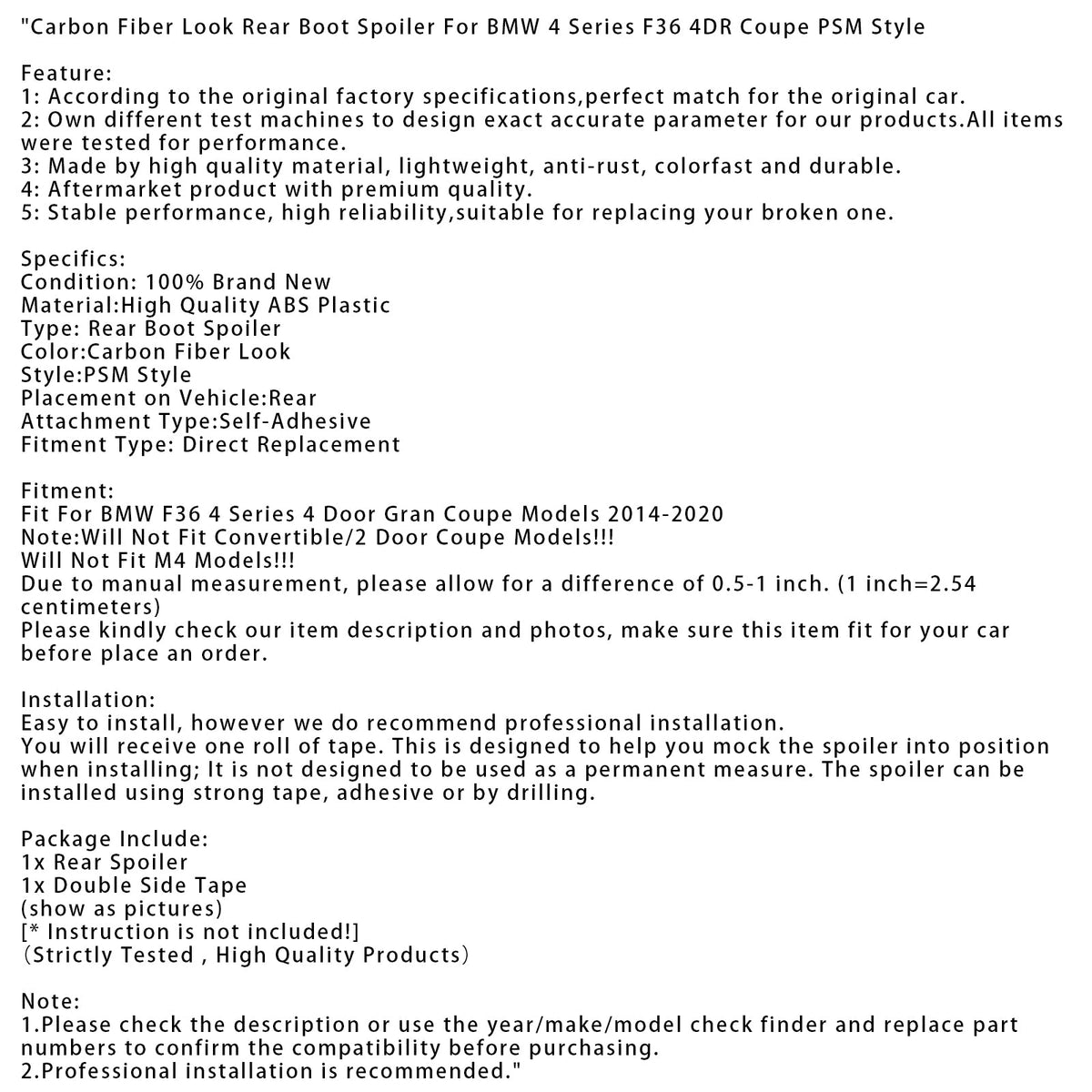 BMW 4シリーズ F36 4ドアクーペ PSMスタイル用 カーボンファイバールック リアブートスポイラー