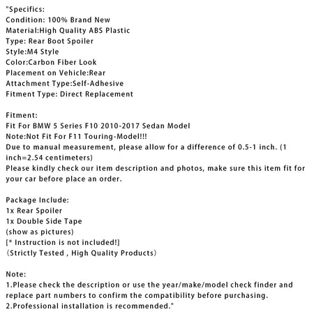 カーボンファイバールック リアブートスポイラー BMW 5シリーズ F10 2010-2016 M4スタイルに適合