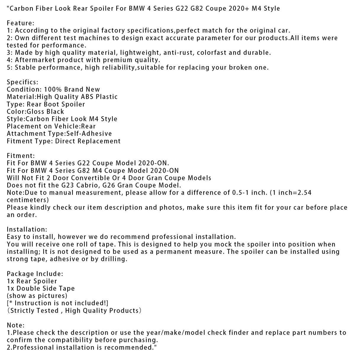カーボンファイバールックリアスポイラー BMW 4シリーズ G22 G82 クーペ 2020+ M4スタイルに適合