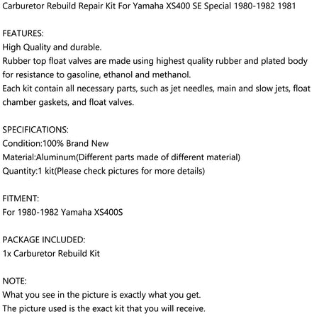 キャブレター修理再構築キット ヤマハ XS400 SE スペシャル 1980-1982 1981 新品