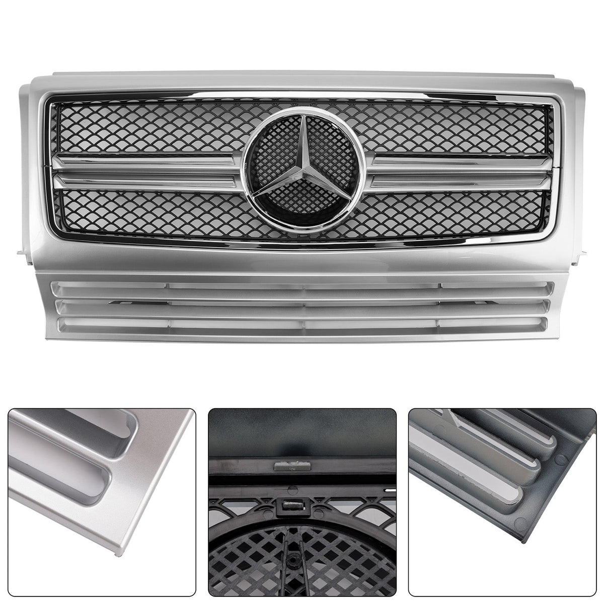 クロームブラックフロントバンパーグリルグリル 1990-2018 メルセデスベンツ W463 に適合
