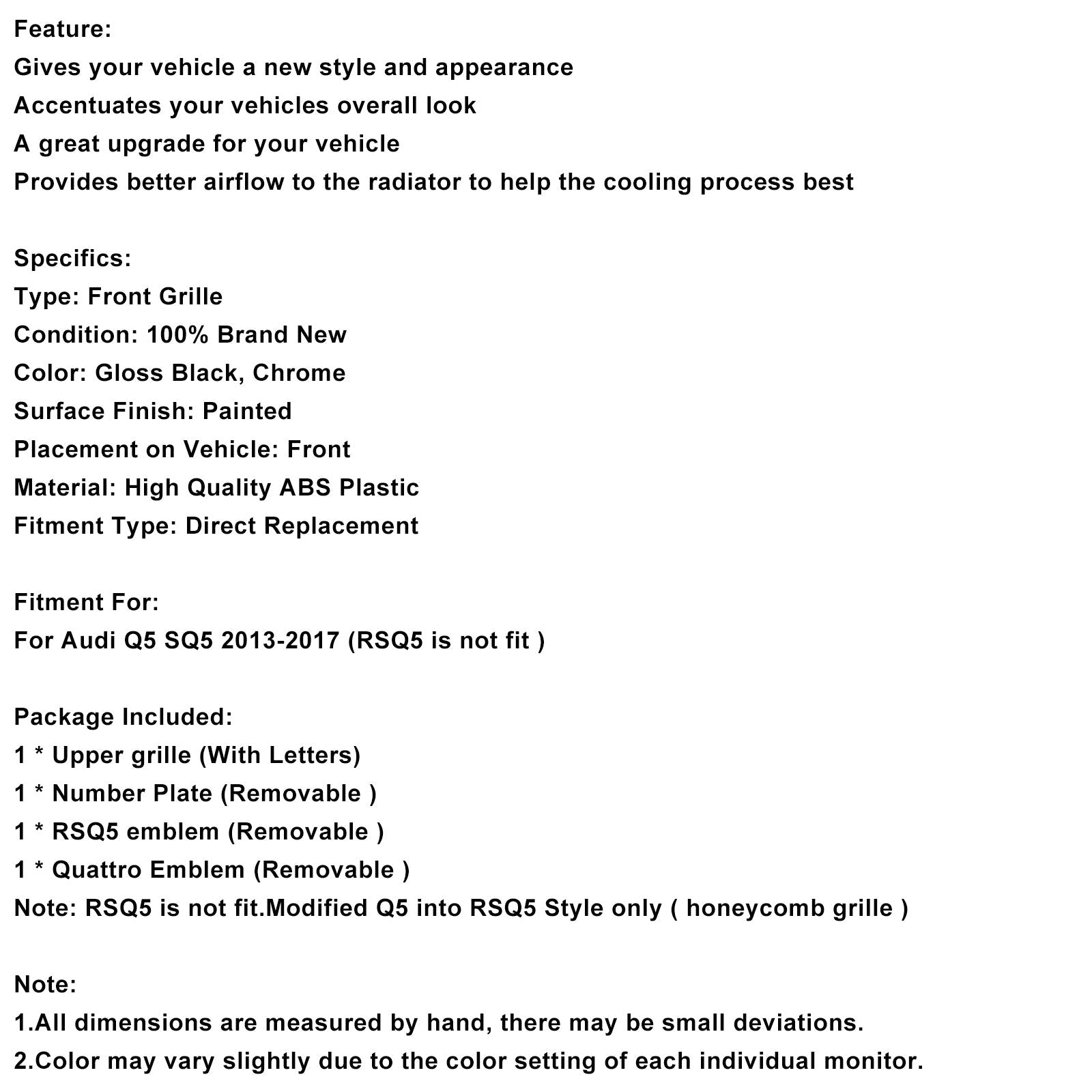 クローム/ブラック フロント ハニカム バンパーグリル Audi Q5 2013-2017 に適合