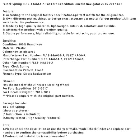 クロックスプリング FL1Z-14A664-A フォード エクスペディション リンカーン ナビゲーター 2015-2017 XLT用