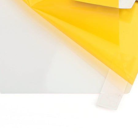 注意: 実際のフィルムは透明で、無色です。黄色に見えるのは最上層で、取り付けが完了すると取り除かれます。