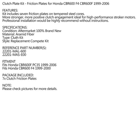 クラッチ プレート キット - ホンダ CBR600 F4 CBR600F 1999-2006 用フリクション プレート