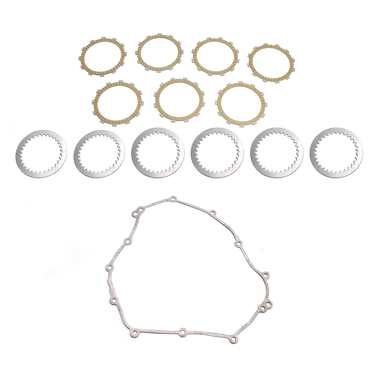 キットには、強化鋼コアの摩擦プレート 7 枚と強化鋼ドライブ プレート 6 枚が含まれています。
