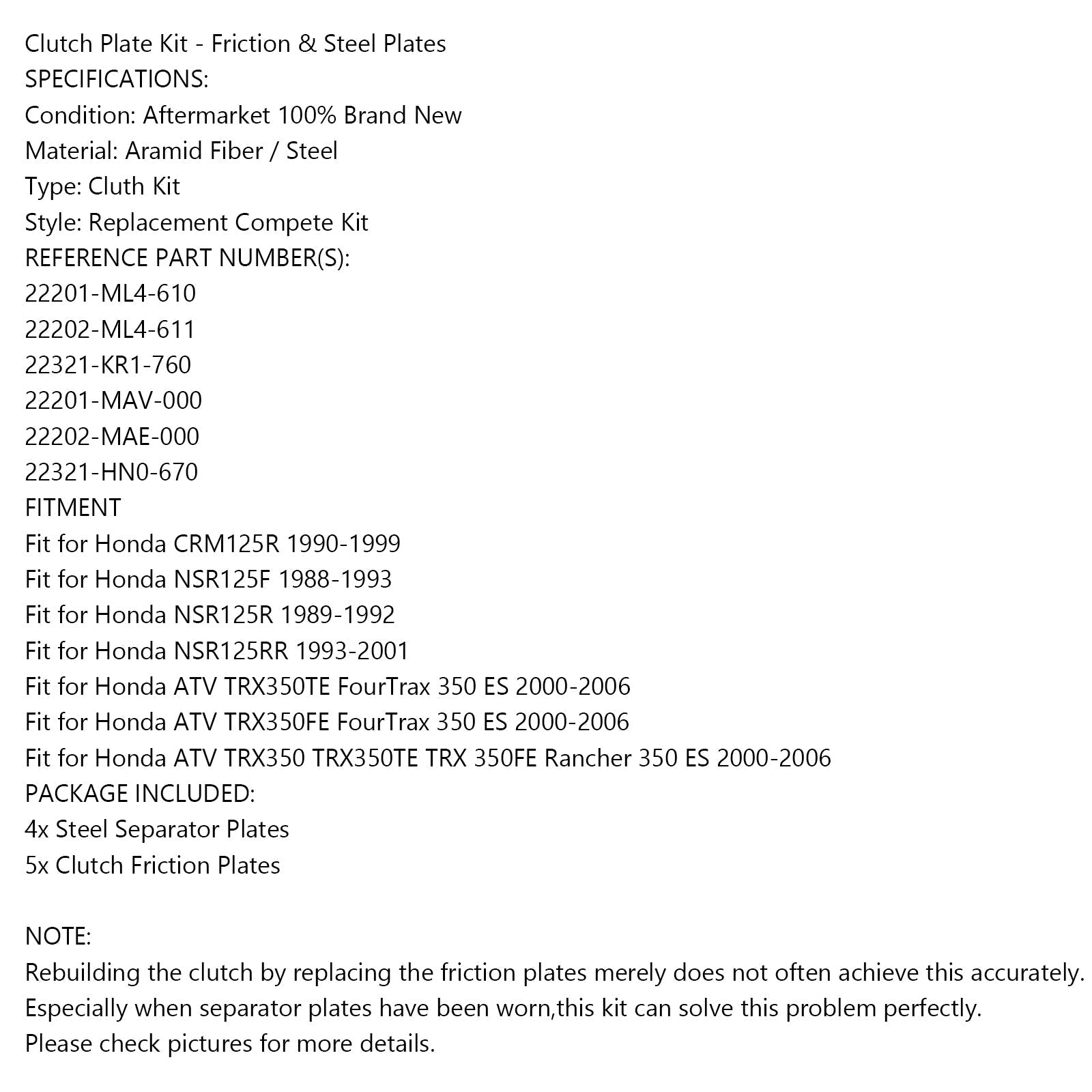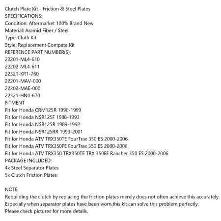 クラッチキット スチール&フリクションプレート ホンダ CRM125R NSR125F NSR125R TRX350 汎用