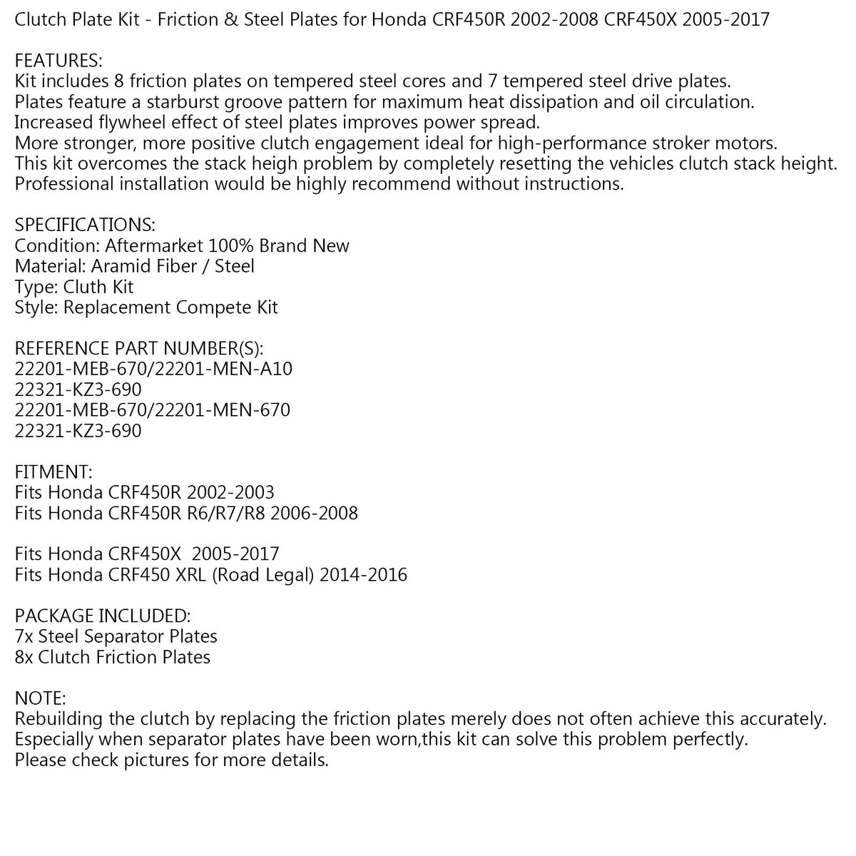クラッチキット スチール&フリクションプレート ホンダCRF450R 2002-2008 CRF450X 2005-2017 汎用
