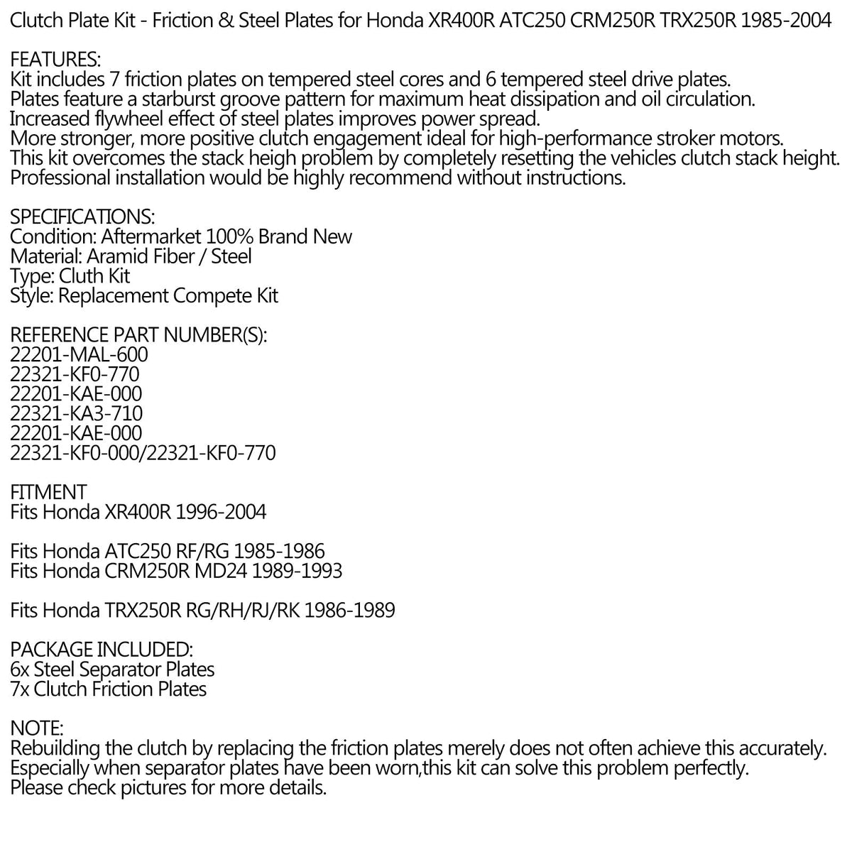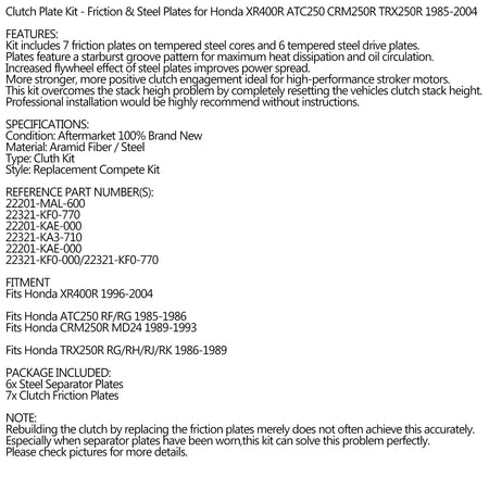 クラッチキット スチール&フリクションプレート ホンダ XR400R ATC250 CRM250R TRX250R 85-04 汎用