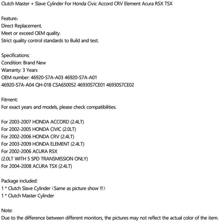 クラッチマスタースレーブシリンダーはホンダシビックアコードCRVエレメントアキュラRSXTSXジェネリックに適合