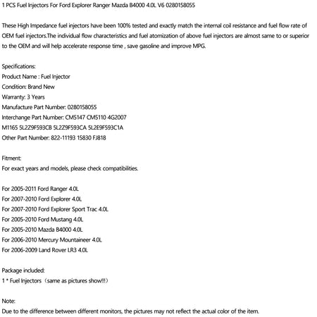 これらの高インピーダンス燃料インジェクターは 100% テスト済みで、OEM 燃料インジェクターの内部コイル抵抗と燃料流量に正確に一致します。上記の燃料インジェクターの個々のフロー特性と燃料霧化は OEM とほぼ同じかそれ以上であり、応答時間の短縮、ガソリンの節約、MPG の向上に役立ちます。