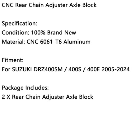 CNC リアチェーンアジャスター アクスルブロック SUZUKI DRZ400SM 400S 400E 2005-2024 に適合