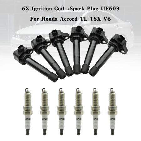 6Xイグニッションコイル+スパークプラグUF603 ホンダアコードTL TSX V6に適合