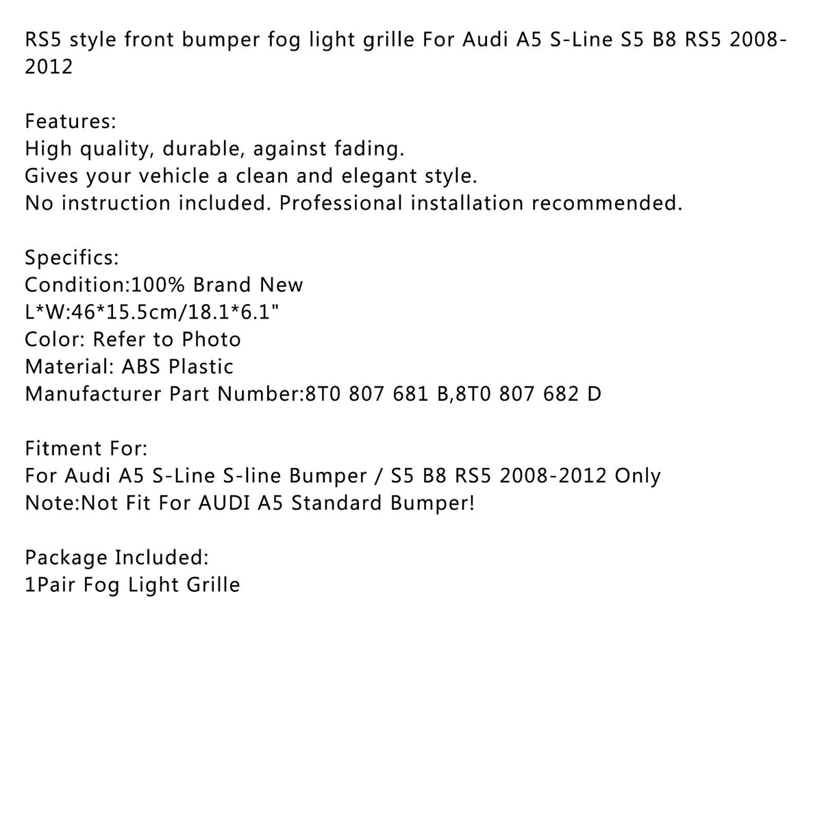 フォグライトグリルグリルトリム付きAudi A5 S-Line S5 B8 RS5 2008-2012 L+R Generic