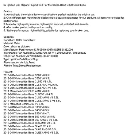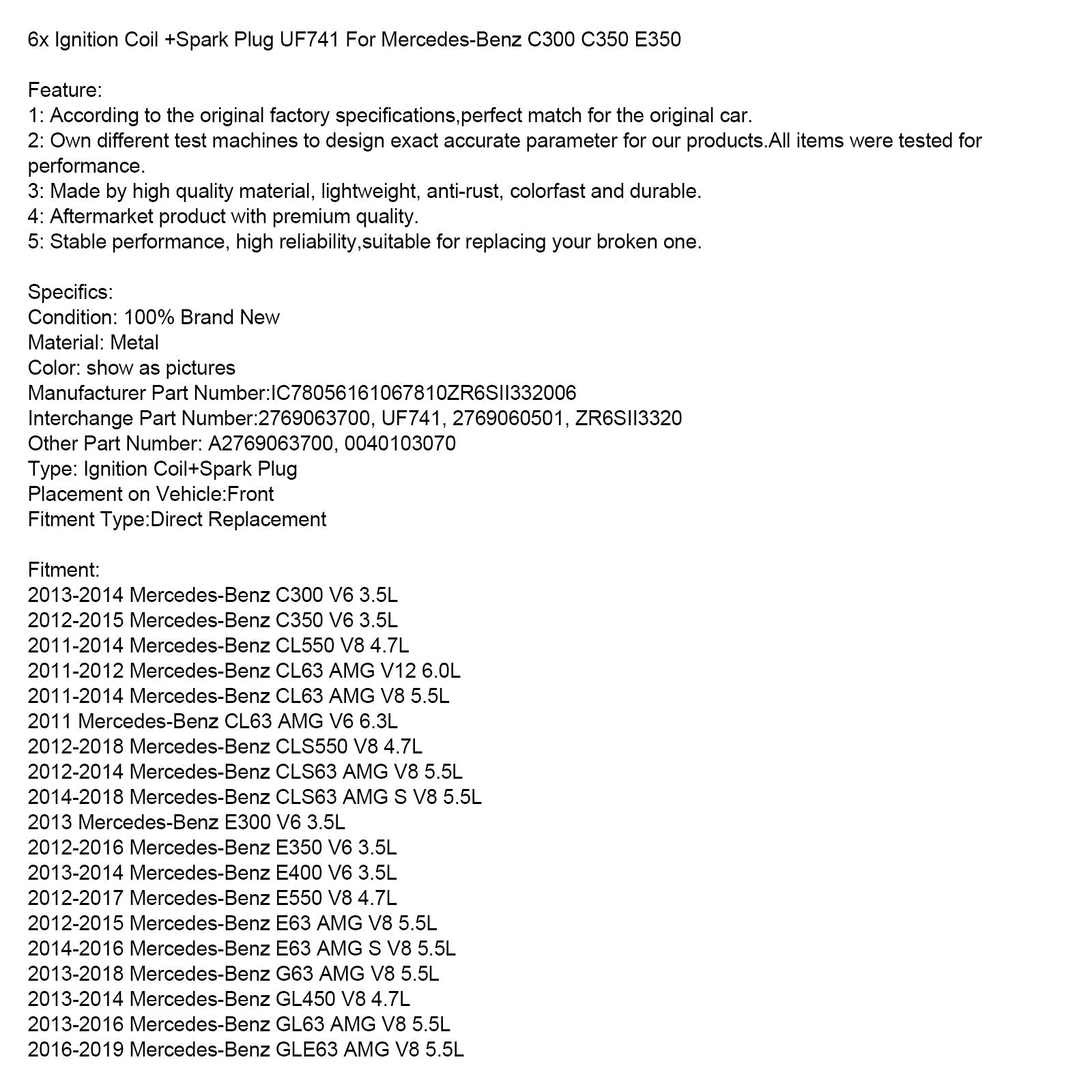 6x イグニッションコイル + スパークプラグ UF741 メルセデスベンツ C300 C350 E350 用