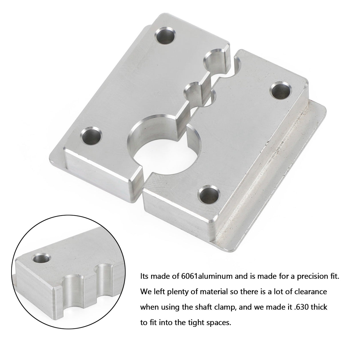 6061アルミニウム製で、精密にフィットするように作られています。シャフトクランプを使用するときに十分なクリアランスが確保されるように材料をたっぷり残し、狭いスペースに収まるように厚さを0.630にしました。