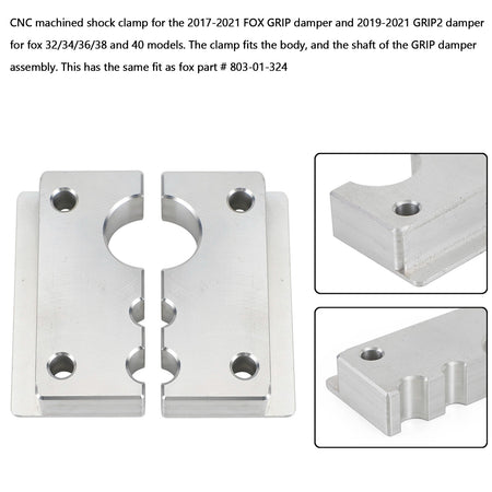 2017-2021 FOX GRIP ダンパーおよび 2019-2021 GRIP2 ダンパー (fox 32/34/36/38 および 40 モデル用) 用の CNC 加工ショック クランプ。クランプは、ボディと GRIP ダンパー アセンブリのシャフトにフィットします。これは、fox 部品番号 803-01-324 と同じフィットです。