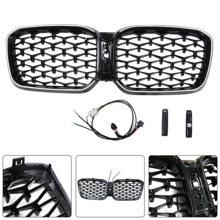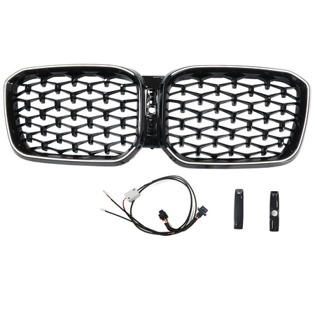 ダイヤモンドグロッシーブラックフロントバンパーキドニーグリルフィットBMW X3 G01 X4 G02 2022-2025