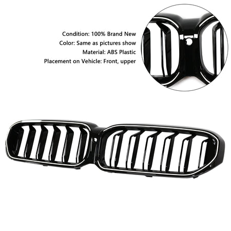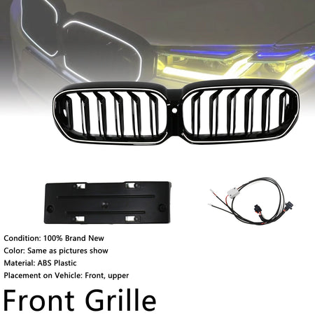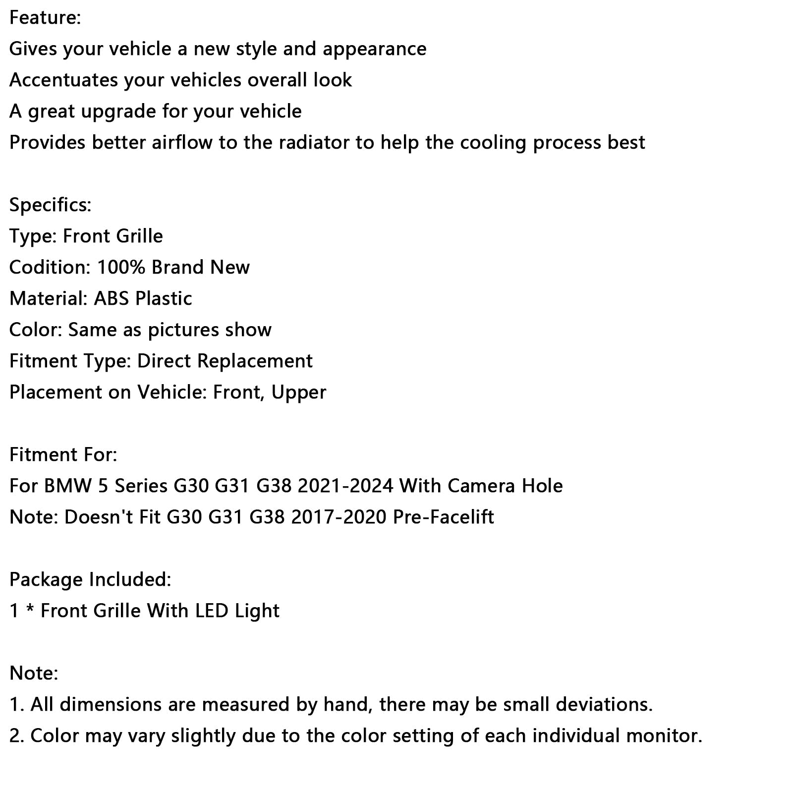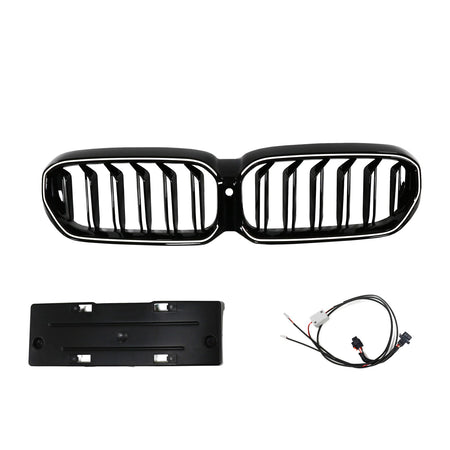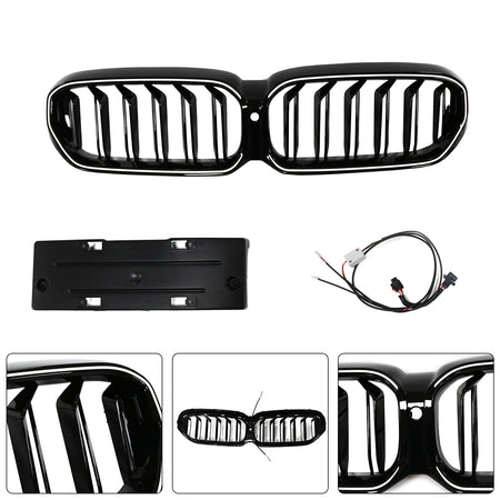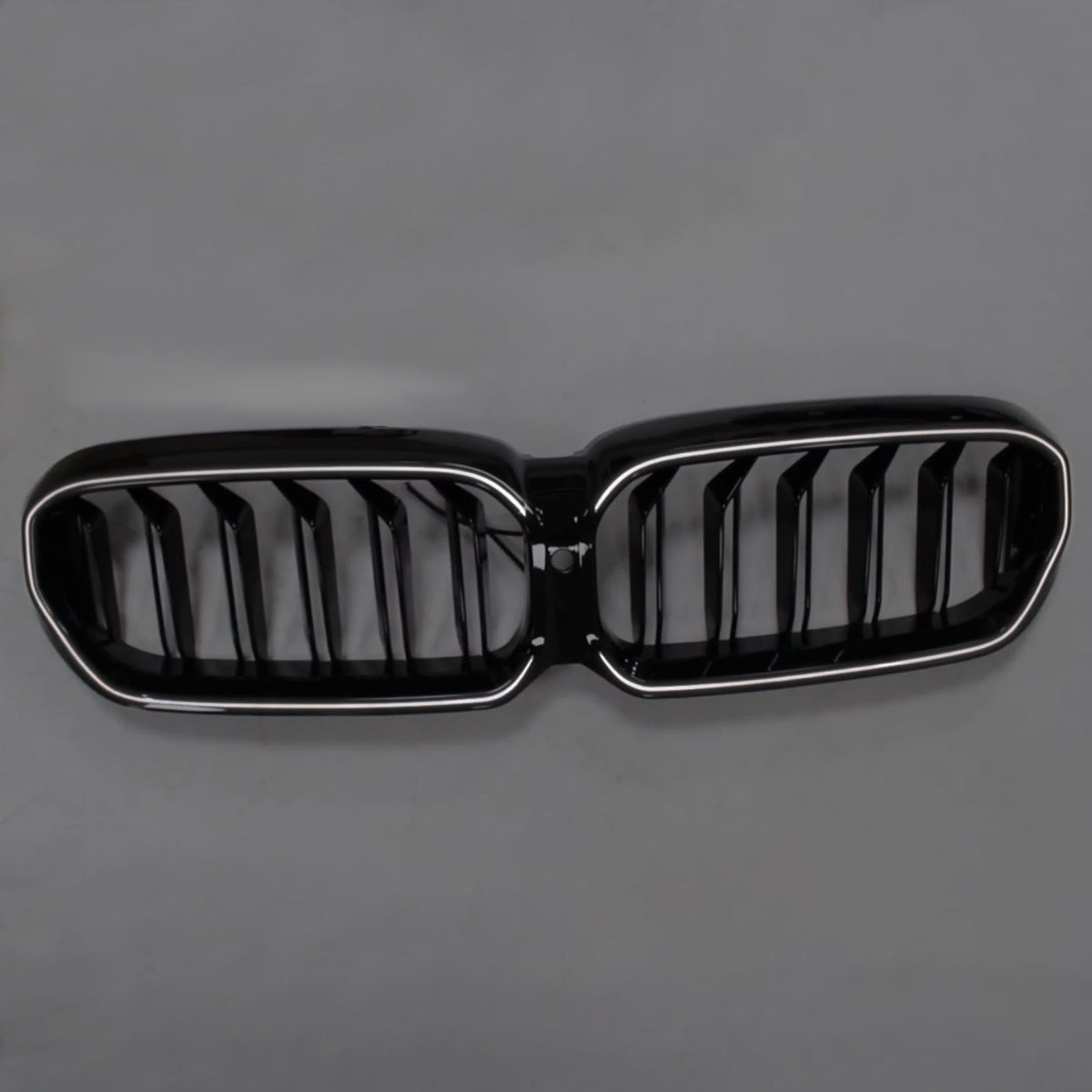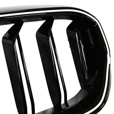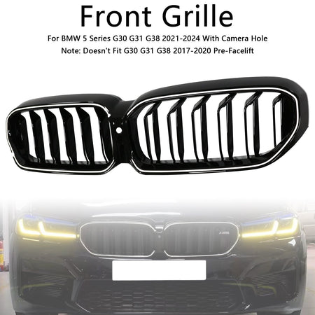 ダブルスラットフロントキドニーグリルフィットBMW 5シリーズG30 G38 2021-2024グロスブラック