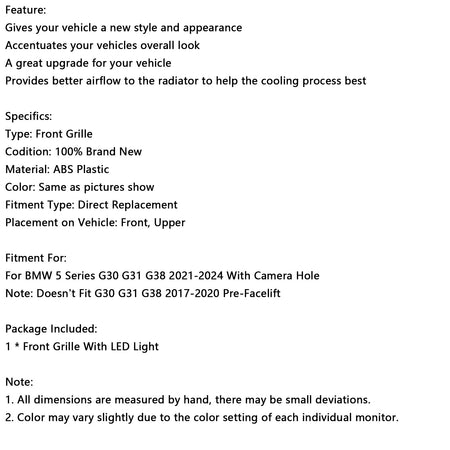 注意: G30 G31 G38 2017-2020 フェイスリフト前モデルには適合しません