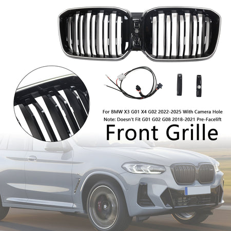 ダブルスラットグロッシーブラックバンパーキドニーグリルフィットBMW X3 G01 X4 G02 2022-2025