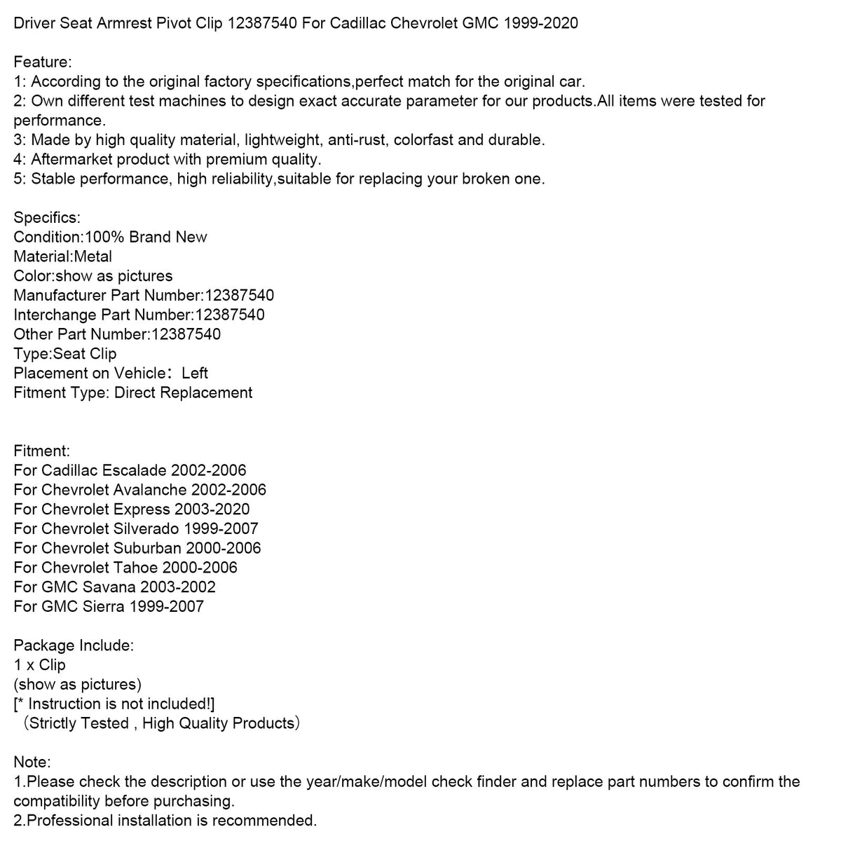運転席アームレストピボットクリップ 12387540 キャデラック シボレー GMC 1999-2020用