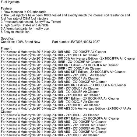 EAT803 燃料インジェクター 49033-0027 カワサキ Ninja ZX10R ZX1000 2011-2017 に適合