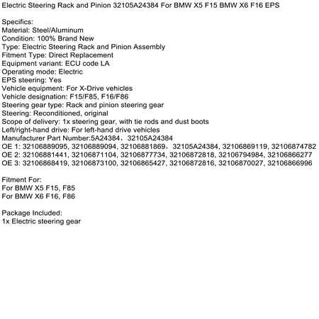 BMW X5 F15、F85 電動ステアリングラック&ピニオン 32105A24384 32106881869