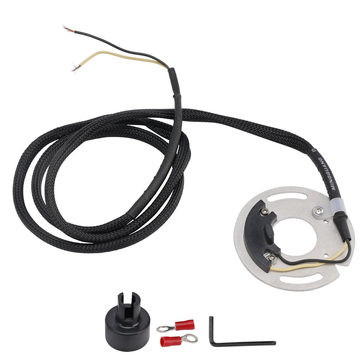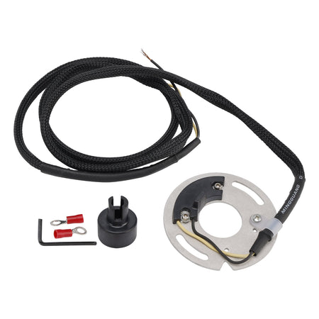 点火カバーの後ろに収納されており、オリジナルの点火アドバンス装置を備えた磁気ローターを使用しているため、工場出荷時の点火進角曲線が維持されます。