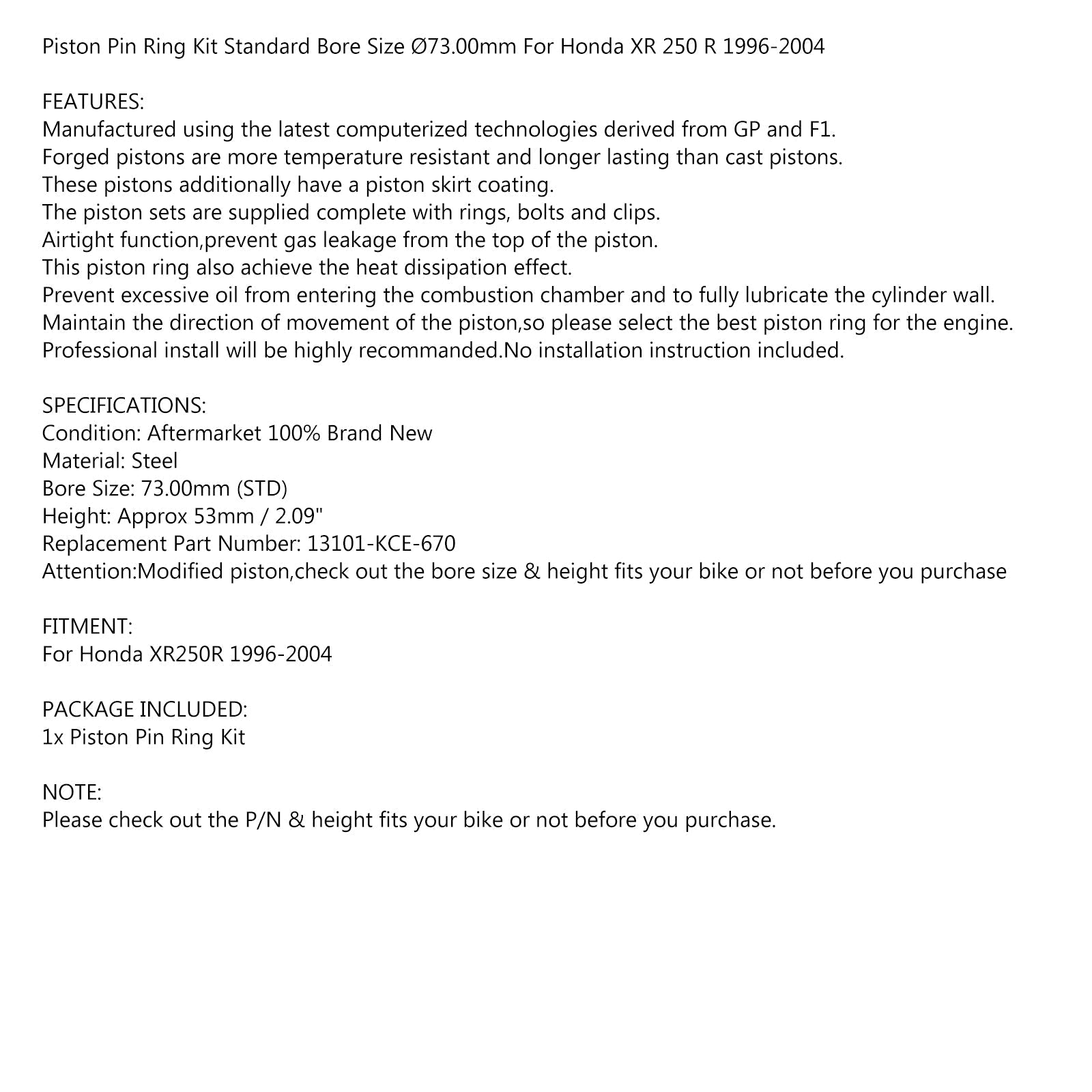 エンジンピストンリングキット 73mm STD ホンダ XR250R 1996-2004 XR 250R 13101-KCE-670 汎用