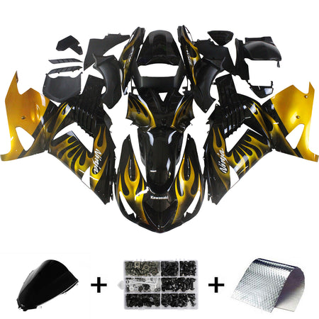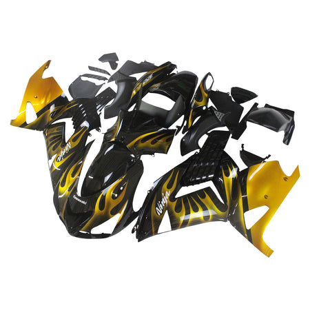 2006-2011 Ninja ZX14R ブラック&ゴールド フレイム ボディワーク フェアリング ABS 射出成形プラスチック セット 6# ジェネリック