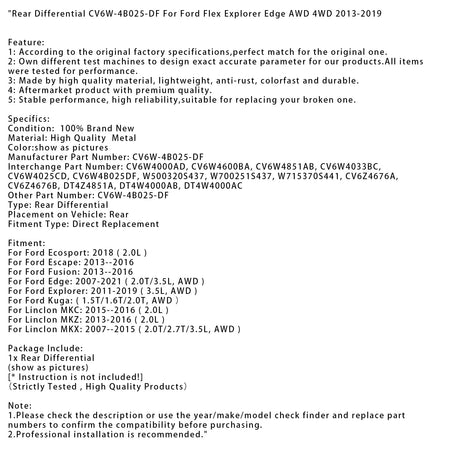 リアディファレンシャル CV6W-4B025-DF フォード フレックス エクスプローラー エッジ AWD 4WD 2013-2019用