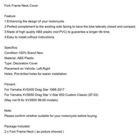 フォークフレームネックカバー ヤマハ XVS400 XVS650 ドラッグスター V-スター 650 97-03 に適合