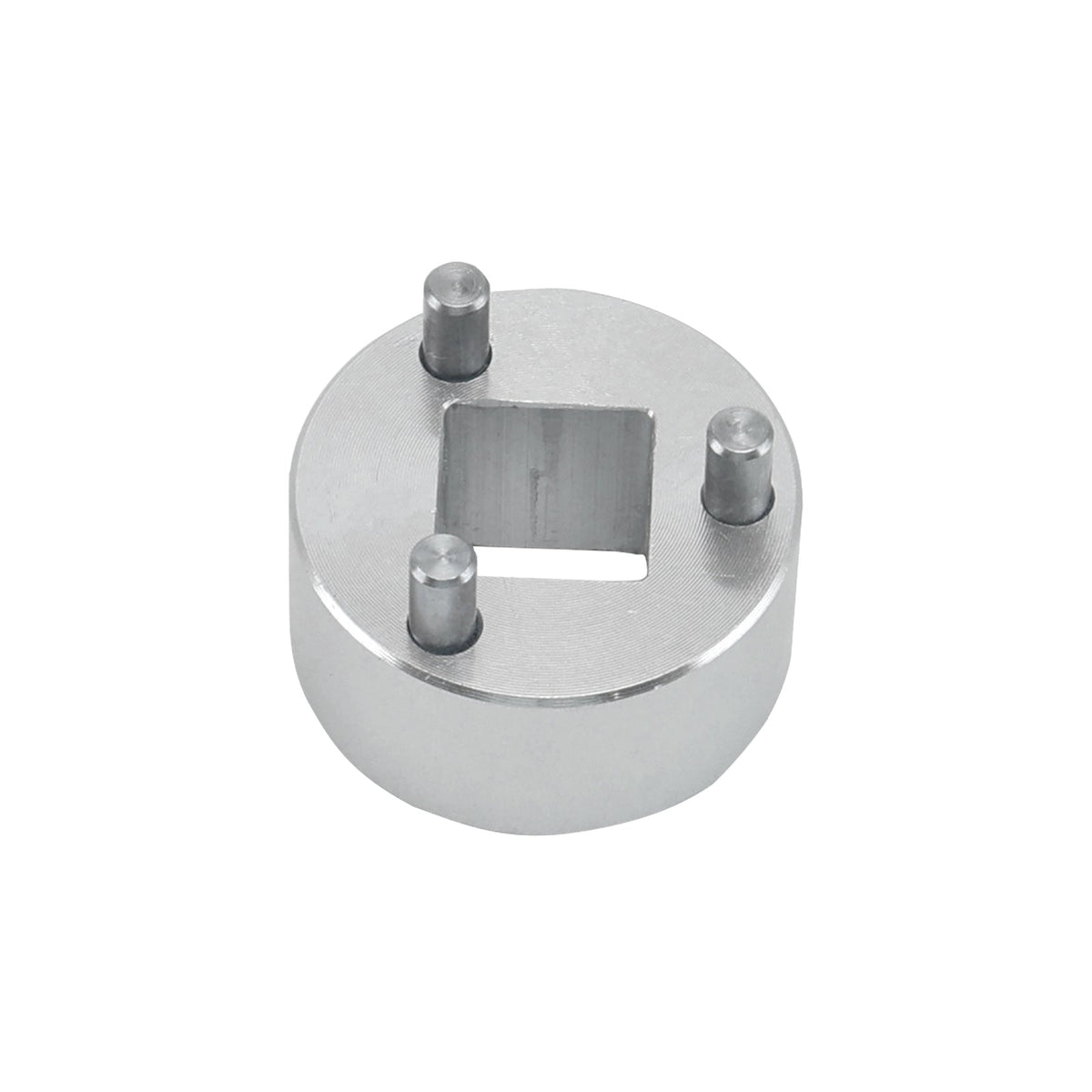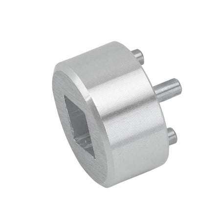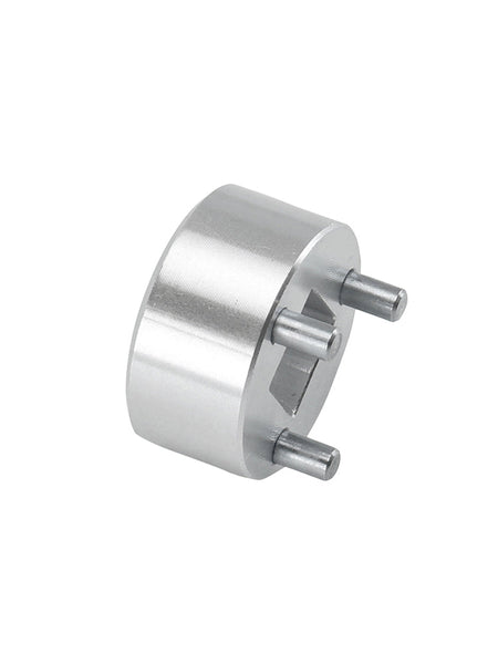 このピン付きソケットは、中間チューブのダイヤモンドフォークエンドキャップにフィットします。硬化ピンと3/8インチ四角ドライブを備えています。10mmシャフトを取り外し、付属のソケットでセンターを押さえ、1-1/16インチまたは27mmのレンチ、あるいはその範囲のモンキーレンチでリングロックナットを緩めます。