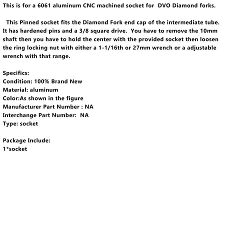 これは、DVO ダイヤモンドフォーク用の 6061 アルミニウム CNC 機械加工ソケットです。