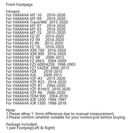 パッケージは以下を含みます:フットペグ 1組(左右)