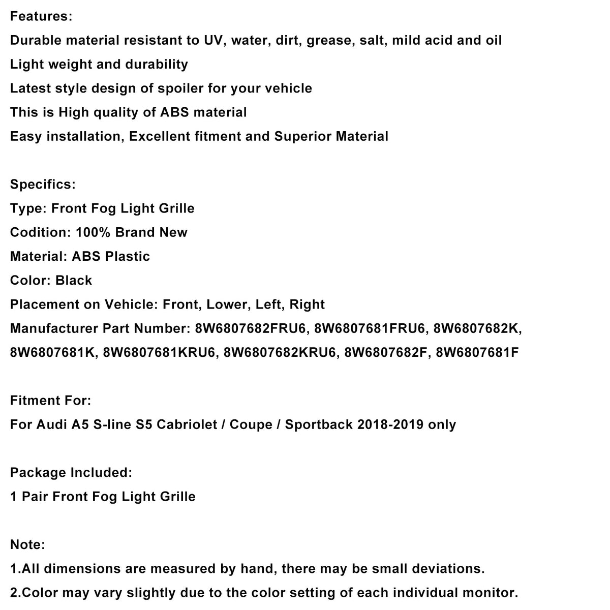 フロントバンパーフォグランプグリルカバーグリル Audi A5 S-Line S5 2018-2019に適合