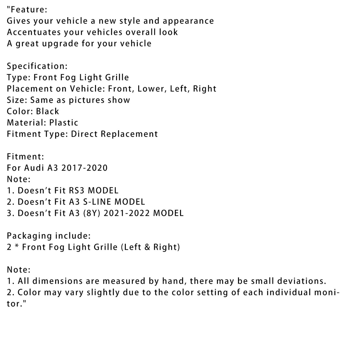 フロントバンパーグリルフォグライトカバーランプフレームトリムフィットアウディA3 2017-2020