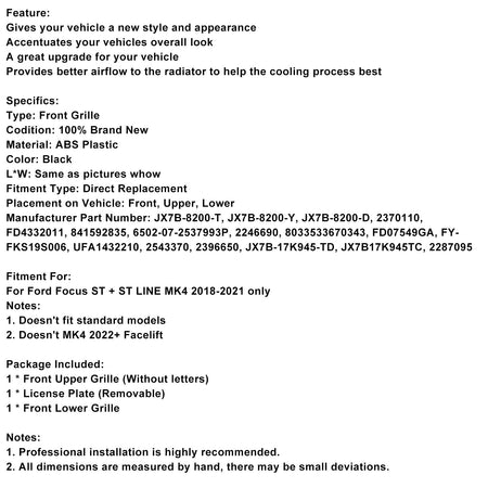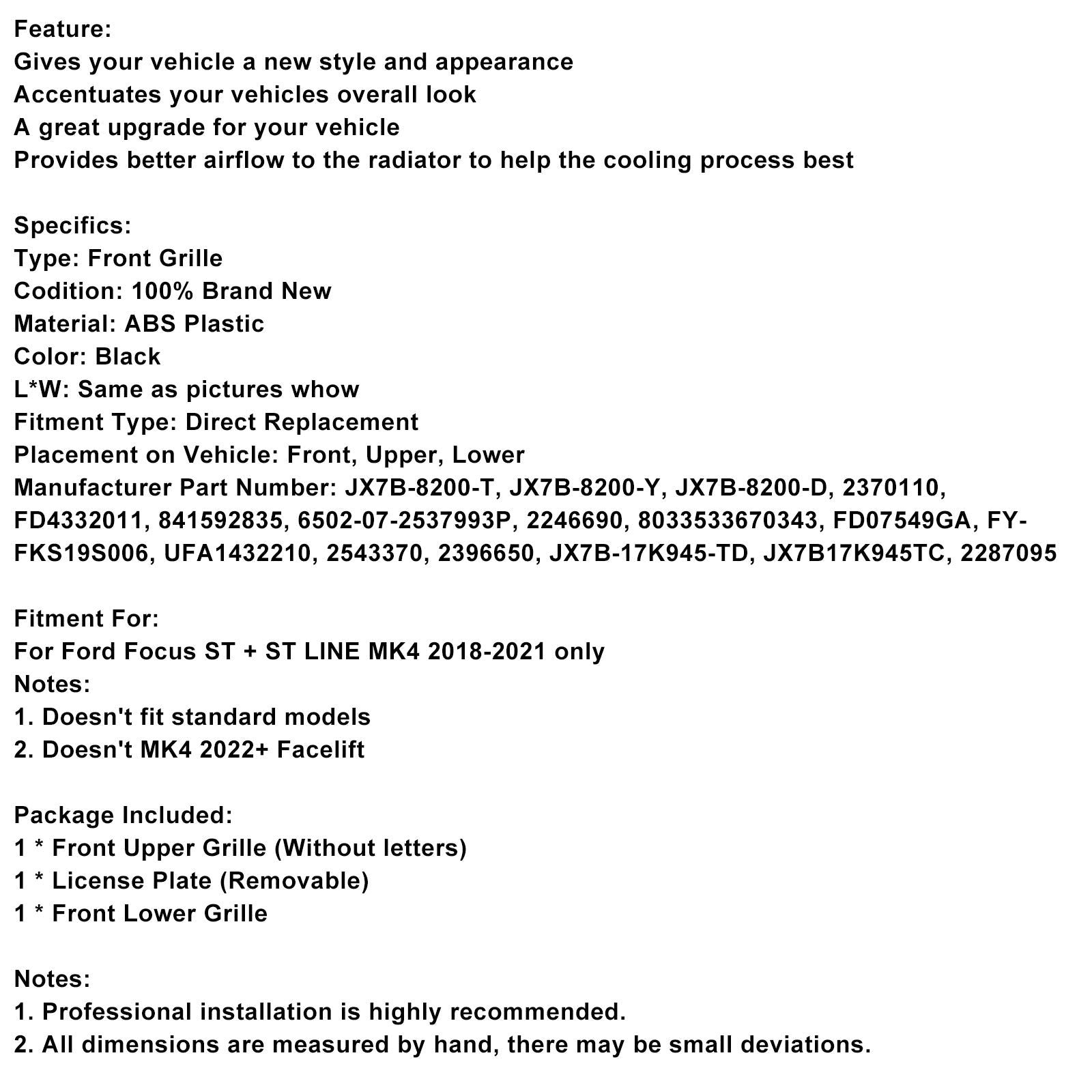 フロントバンパーグリル フォードフォーカス ST + STライン MK4 2018-2021 ブラック