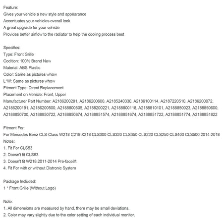 フロントバンパーグリルグリル メルセデスベンツ CLSクラス W218 CLS350 2015-2018に適合