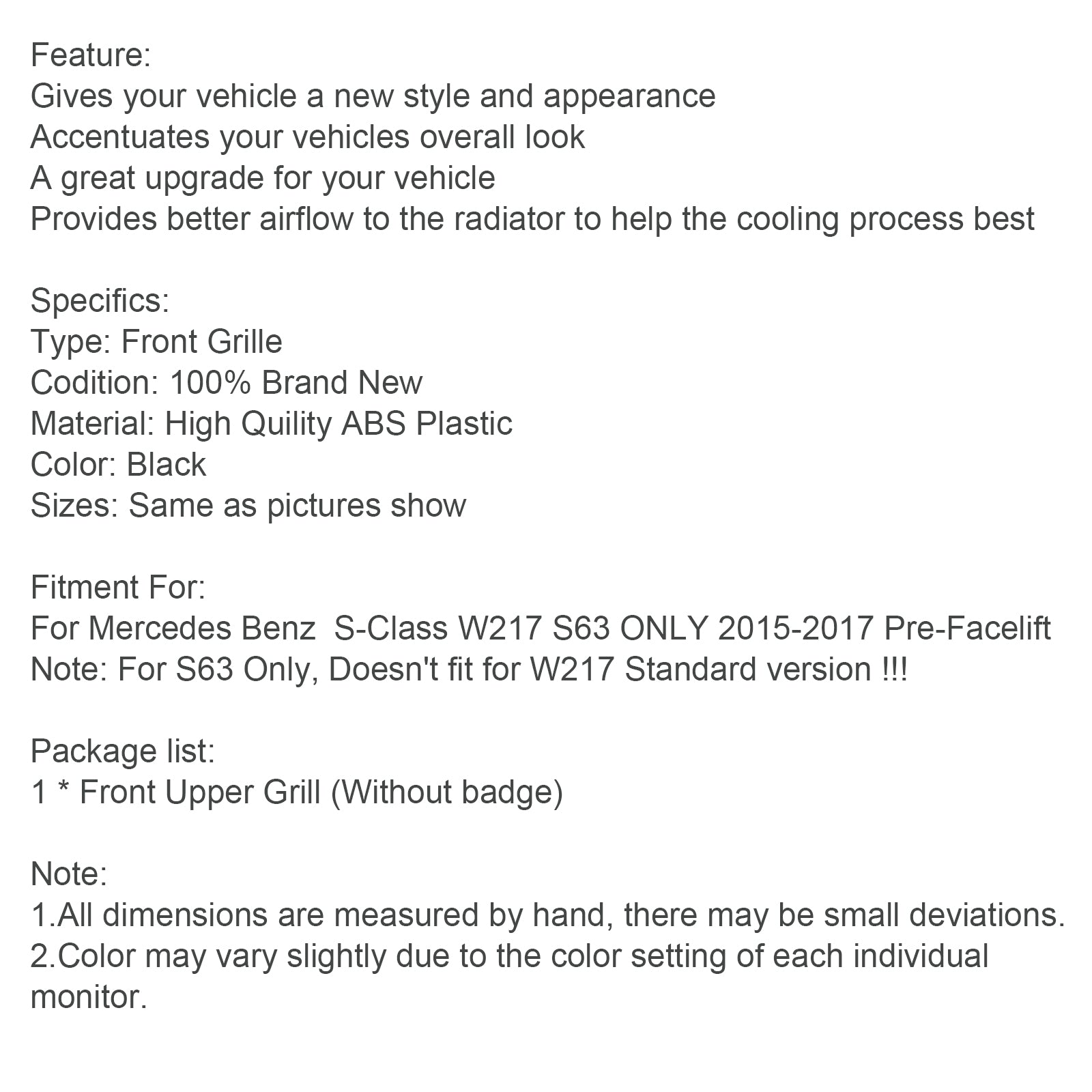 フロントバンパーグリルグリルはメルセデスベンツW217 S63 AMG 2015-2017プレフェイスリフトに適合します