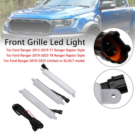 フロントバンパーグリルグリルホワイトLEDライトフォードレンジャー2015-2023 T7 T8に適合
