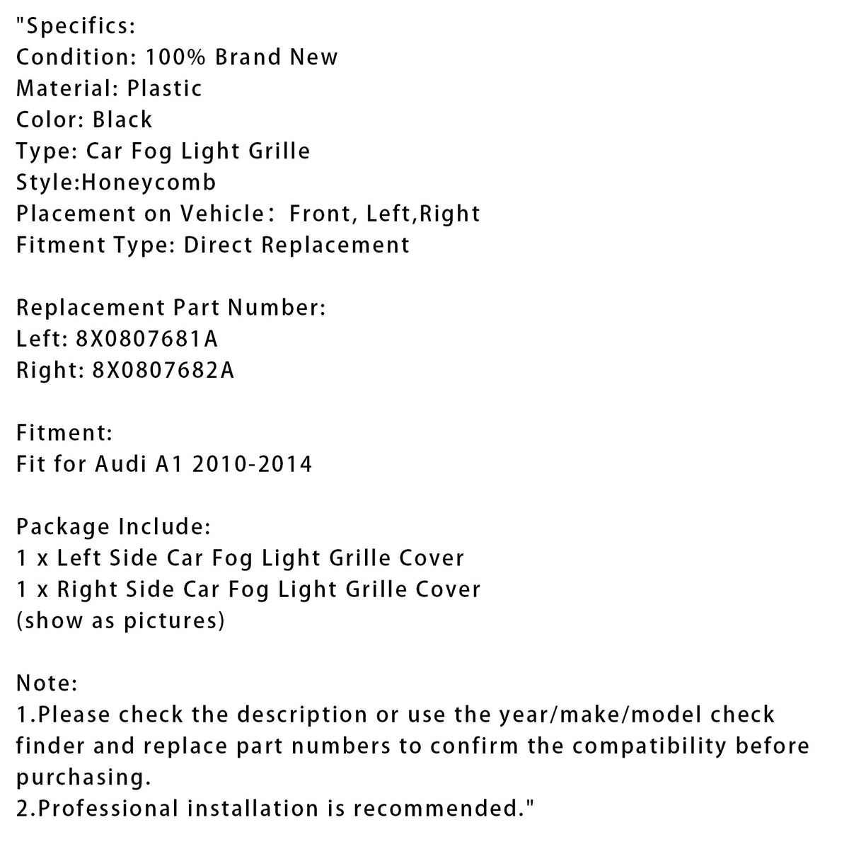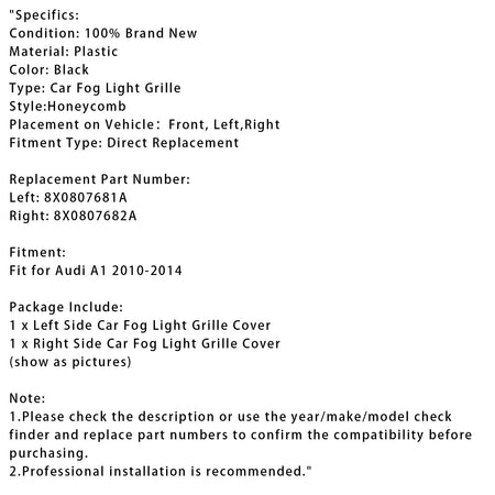 左側車フォグランプグリルカバー x 1