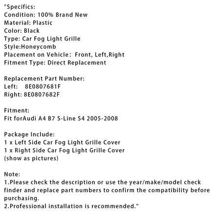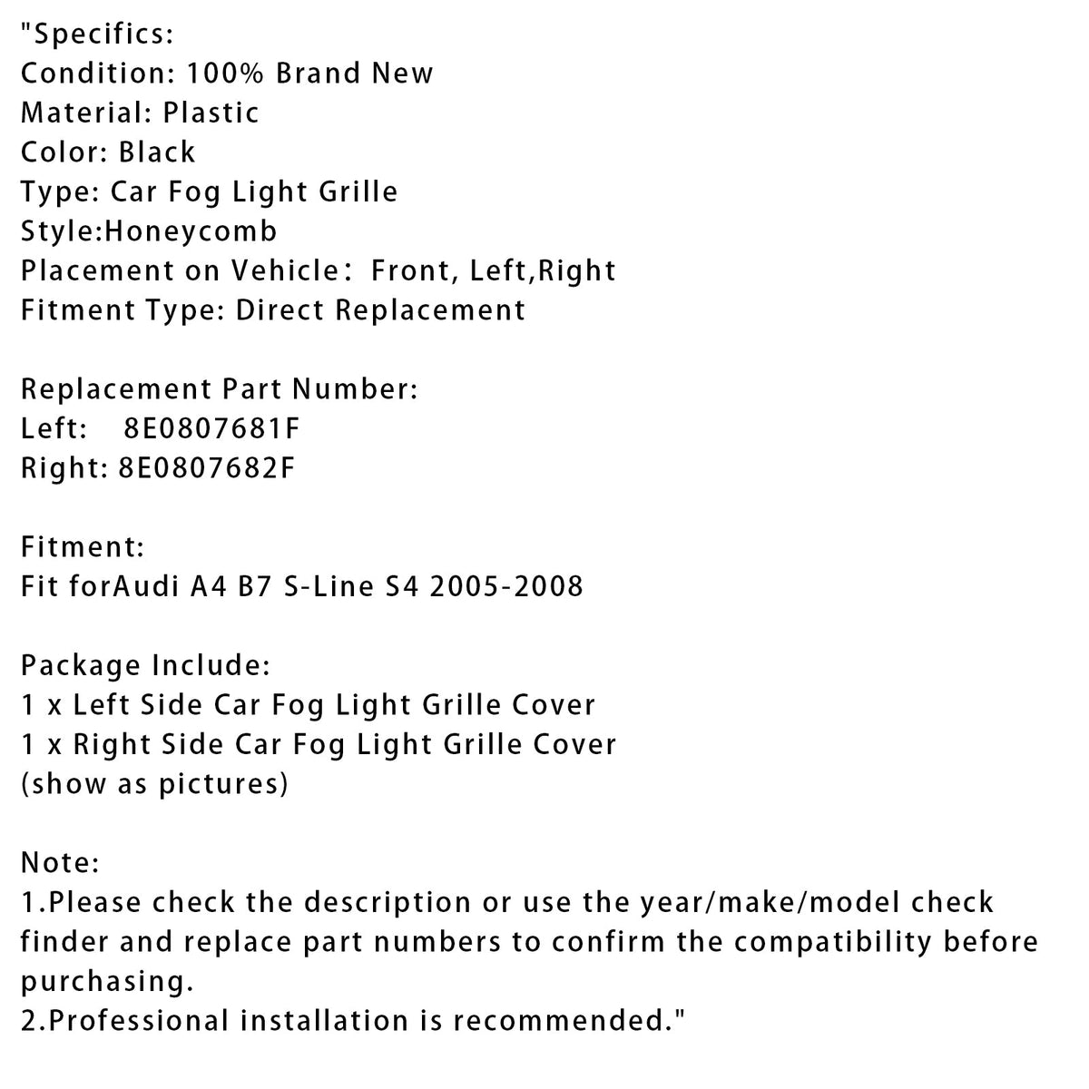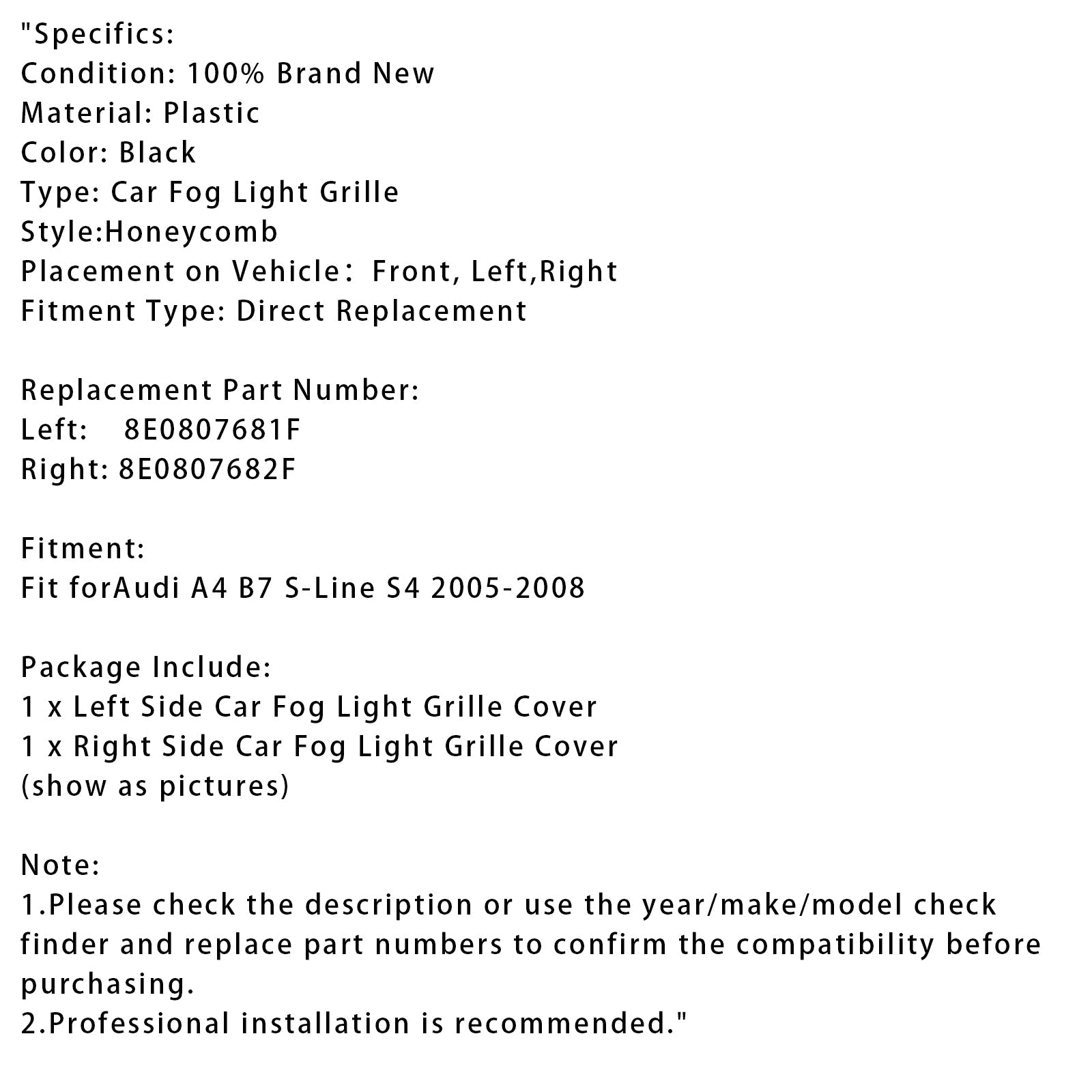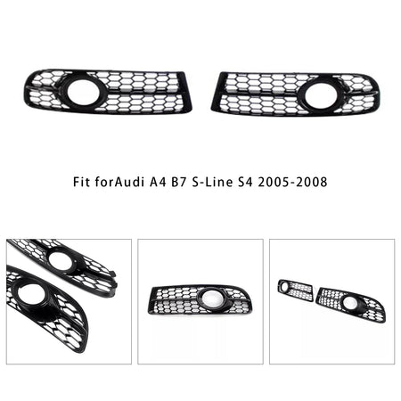 アウディ A4 B7 S-Line S4 2005-2008用 フロントバンパー ハニカム フォググリルカバー ブラック