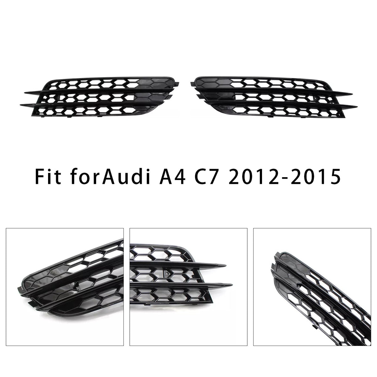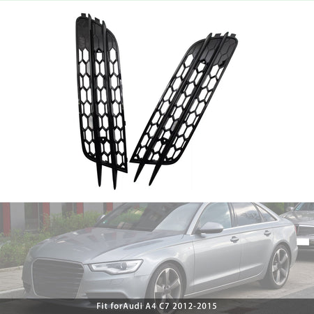 アウディ A4 C7 2012-2015 用 フロントバンパー ハニカム フォググリルカバー ブラック