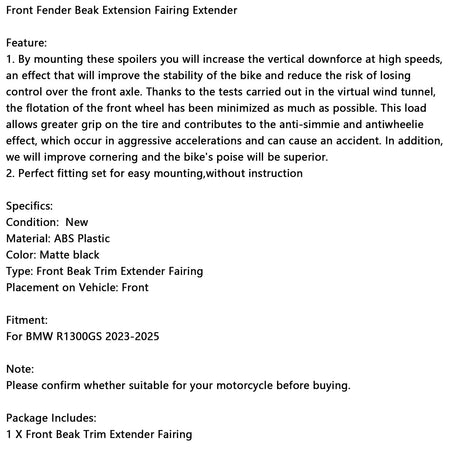 フロントフェンダービークエクステンションフェアリングエクステンダー BMW R1300GS 2023-2025に適合