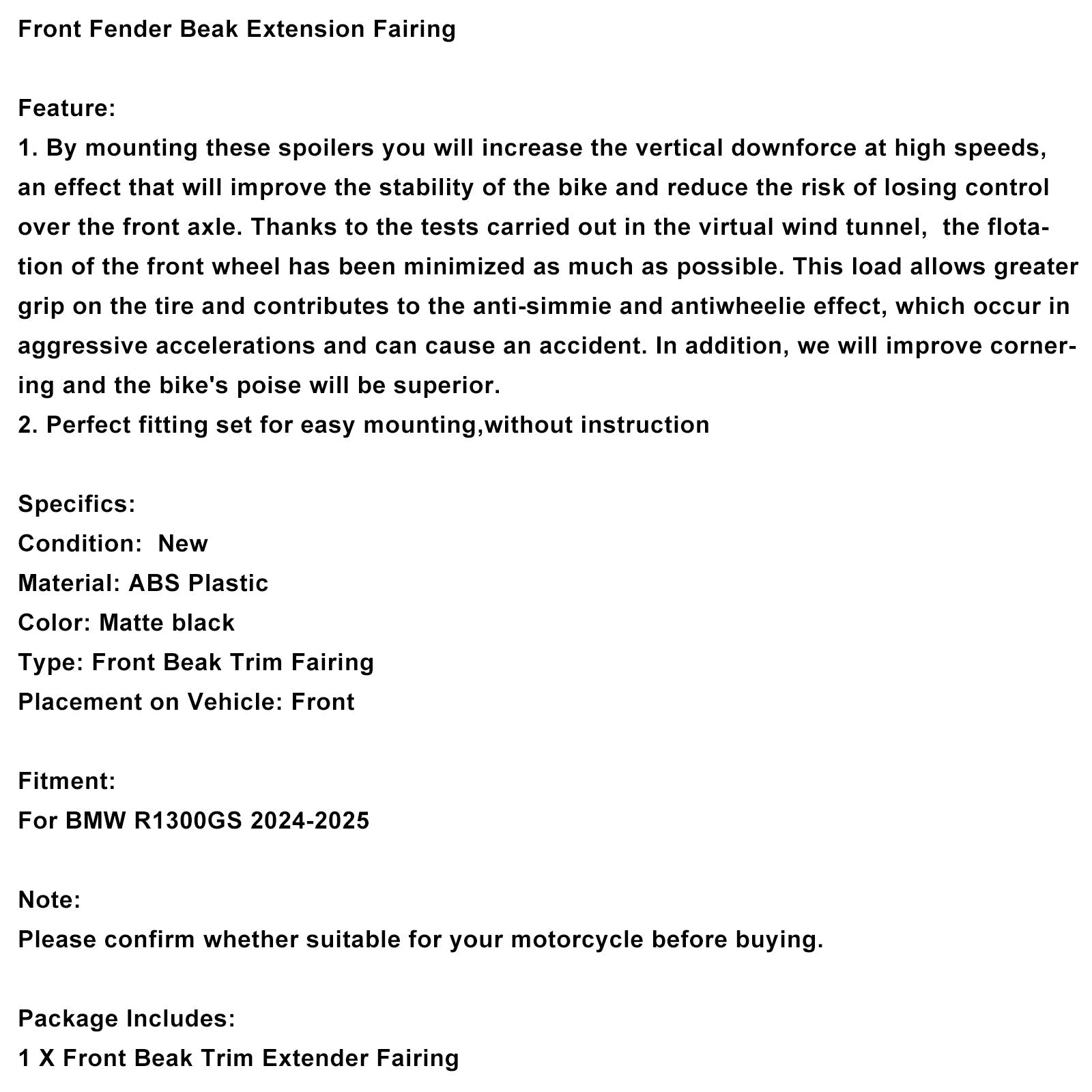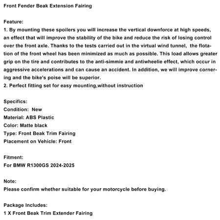 フロントフェンダービークエクステンションフェアリング BMW R1300GS 2024-2025 に適合